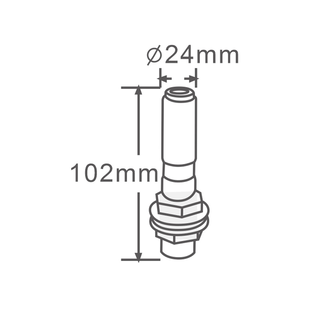 rozměry: šířka 25 mm, výška 102 mm, průměr 24 mm