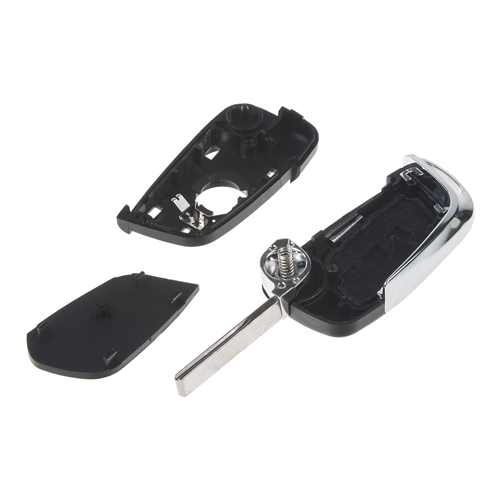 Náhradní obal vystřelovacího klíče pro vozy Citroën/Peugeot s 2-tlačítkovým vystřelovacím klíčem (bez elektroniky a čipu imobilizéru). Slouží pro změnu ze staršího vystřelovacího klíče na novější verzi. Do vystřelovacího klíče je nutno vložit z původního klíče elektroniku dálkového ovládání a čip imobilizéru (transpondér), planžetu klíče je třeba nechat vyfrézovat podle tvaru originálního klíče.