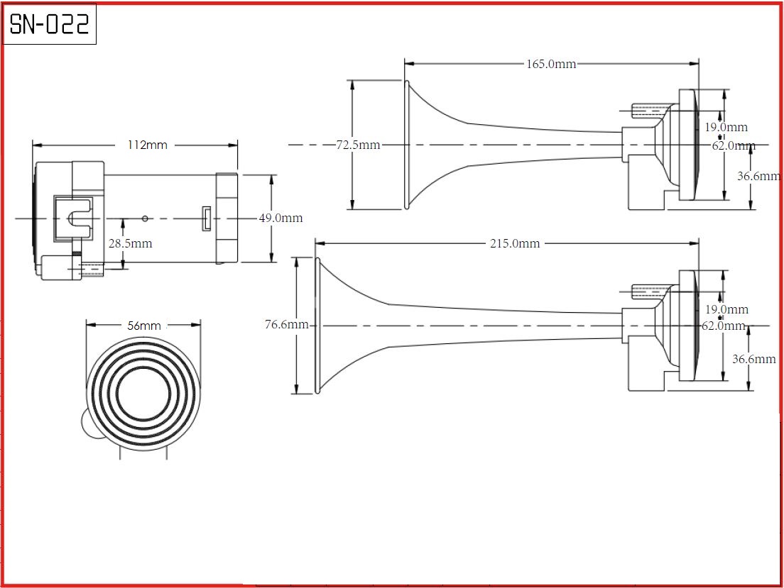 2-trubková fanfára poháněná vzduchovým kompresorem dodávaným v sadě.Trubky jsou vyrobeny z plastu. V sadě jsou dodávány také hadice a drobný montážní materiál.