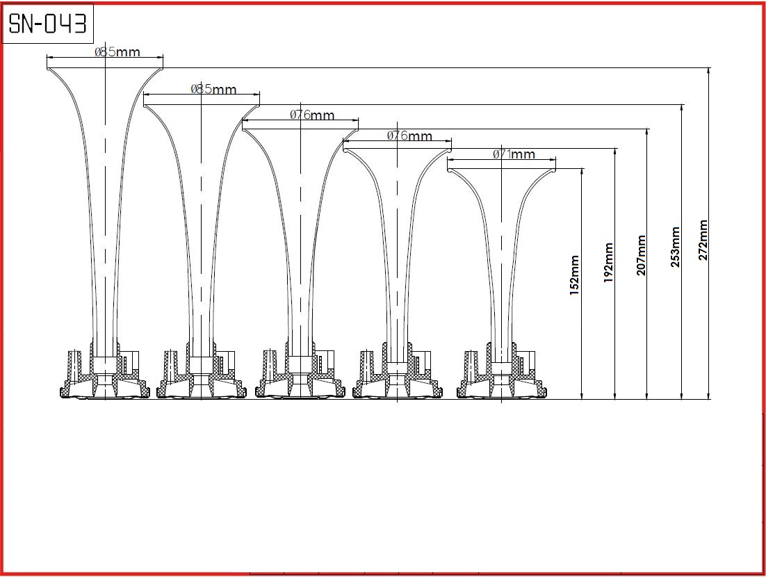 5-trubková fanfára poháněná vzduchovým kompresorem dodávaným v sadě.Trubky jsou vyrobeny z červeného plastu ABS. V sadě jsou dodávány také hadice a drobný montážní materiál. Zvuk trubek je dán melodií La Cucaracha.