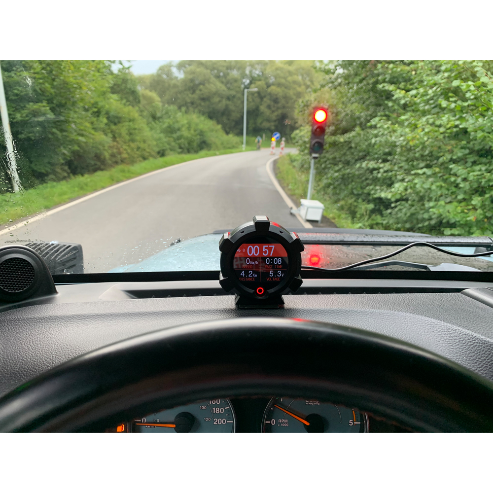 Palubní displej, s vestavěným víceosým gyroskopem a GPS systémem, který dokáže měřit sklon a náklon,
