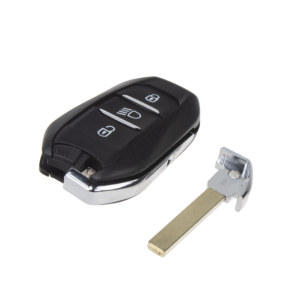 Náhradní obal vystřelovacího klíče pro vozy Citroën/Peugeot s novým 3-tlačítkovým vystřelovacím klíčem (bez elektroniky a čipu imobilizéru). Do vystřelovacího klíče je nutno vložit z původního klíče elektroniku dálkového ovládání, planžetu klíče je třeba nechat vyfrézovat podle tvaru originálního klíče.