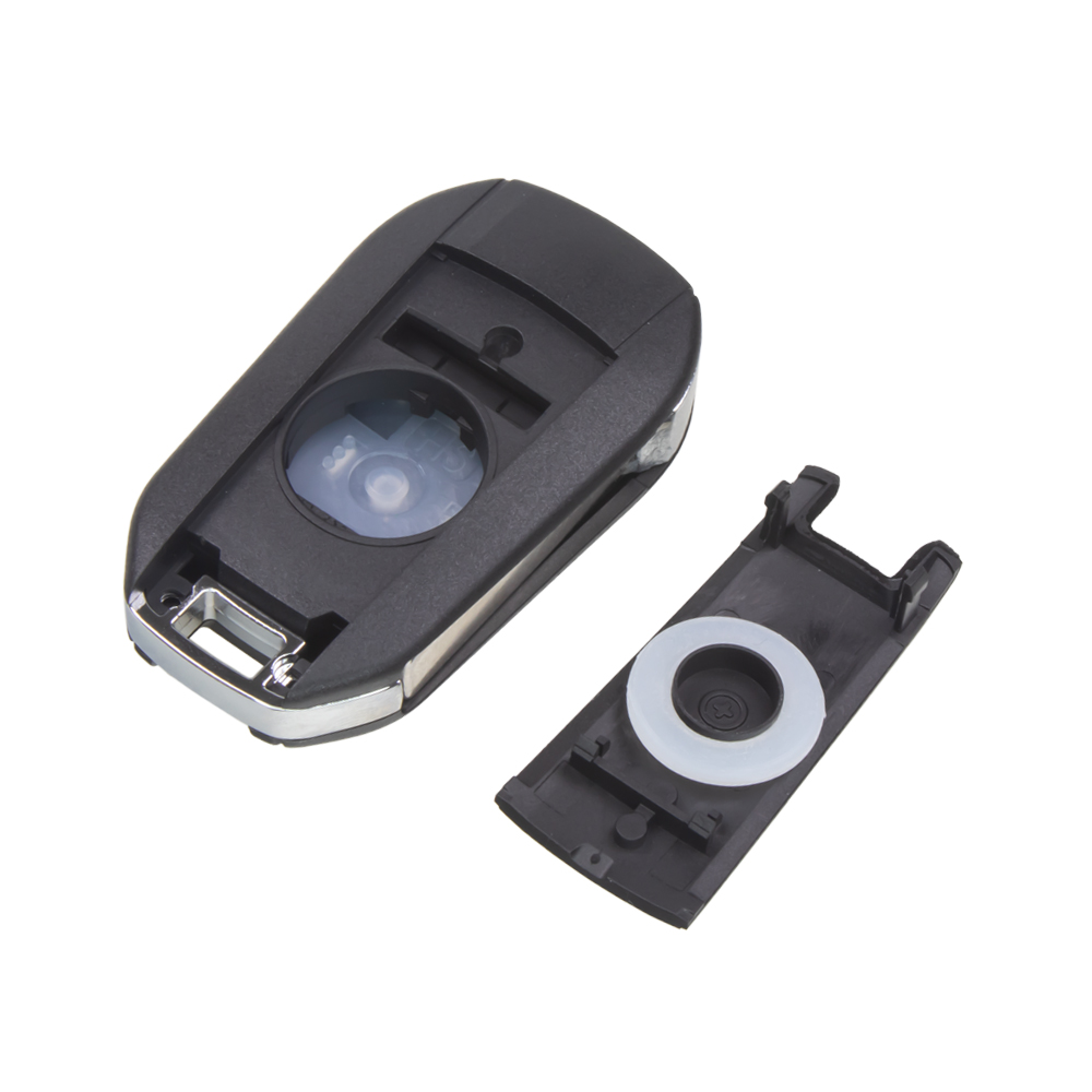 Náhradní obal vystřelovacího klíče pro vozy Peugeot/Citroën/Toyota s 3-tlačítkovým vystřelovacím klíčem (bez elektroniky a čipu imobilizéru). Do vystřelovacího klíče je nutno vložit z původního klíče elektroniku dálkového ovládání, planžetu klíče je třeba nechat vyfrézovat podle tvaru originálního klíče.