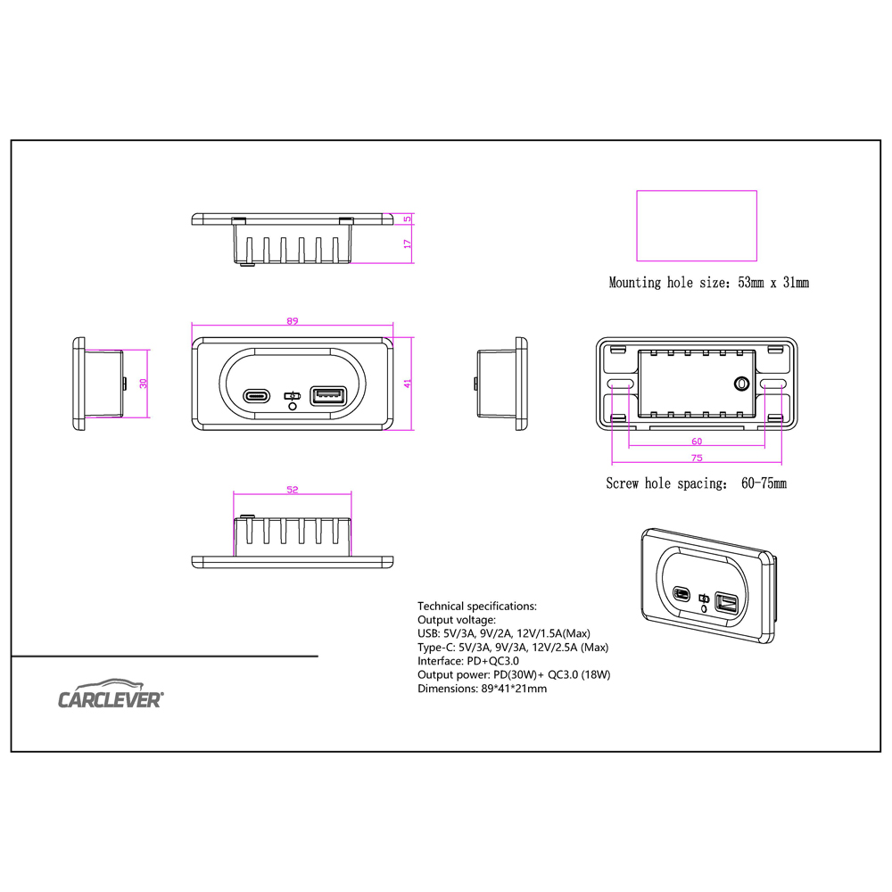 podpora protokolu: DCP (BC1.2, Apple, Samsung), Qualcomm Quick Charge QC2.0 / QC3.0, PD2.0 / PD3.0(PPS), Huawei Fast Charge Protocol FCP, Samsung Fast Charge Protocol AFC
