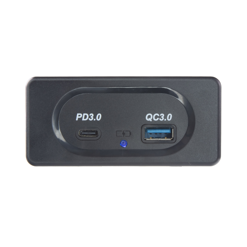 2x USB nabíječka (1x USB-A, 1x USB-C) pro montáž do otvoru, modrá LED indikace.