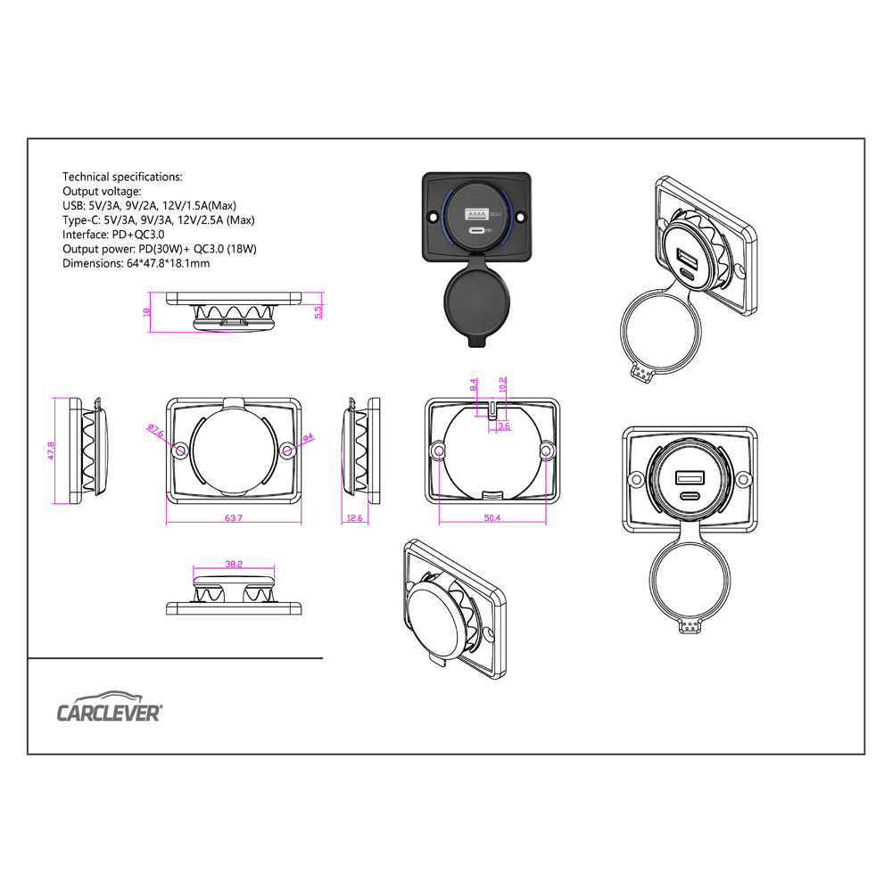 podpora protokolu: DCP (BC1.2, Apple, Samsung), Qualcomm Quick Charge QC2.0 / QC3.0, PD2.0 / PD3.0 (PPS), Huawei Fast Charge Protocol FCP, Samsung Fast Charge Protocol AFC