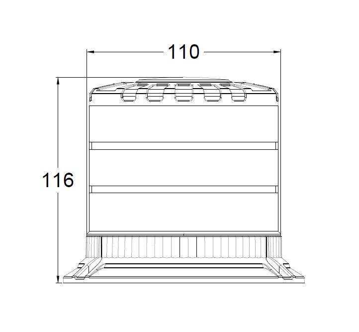 rozměry: průměr základny 136 mm, průměr krytu 110 mm, výška 116 mm