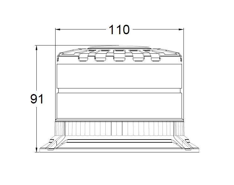 rozměry: průměr základny 136 mm, průměr krytu 110 mm, výška 91 mm