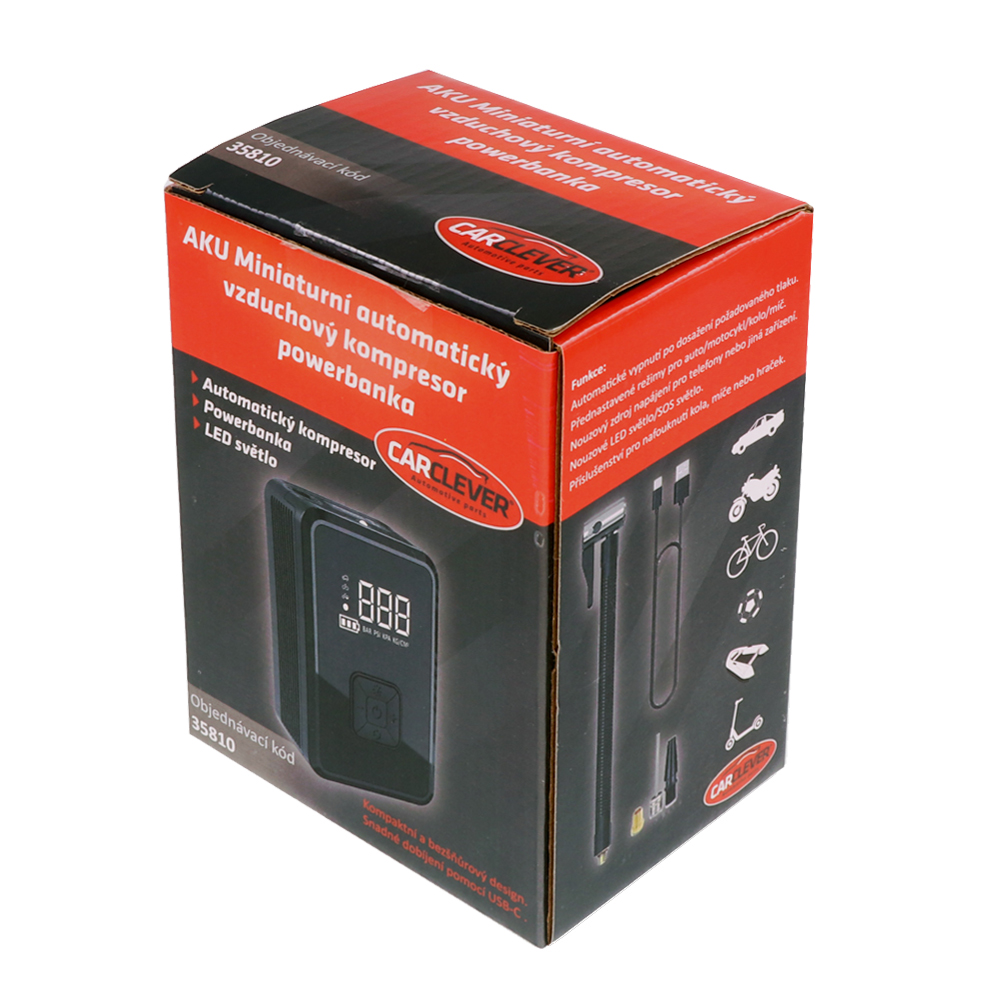 Zároveň je možno použít kompresor i jako záložní zdroj napětí s USB výstupem (powerbanka).