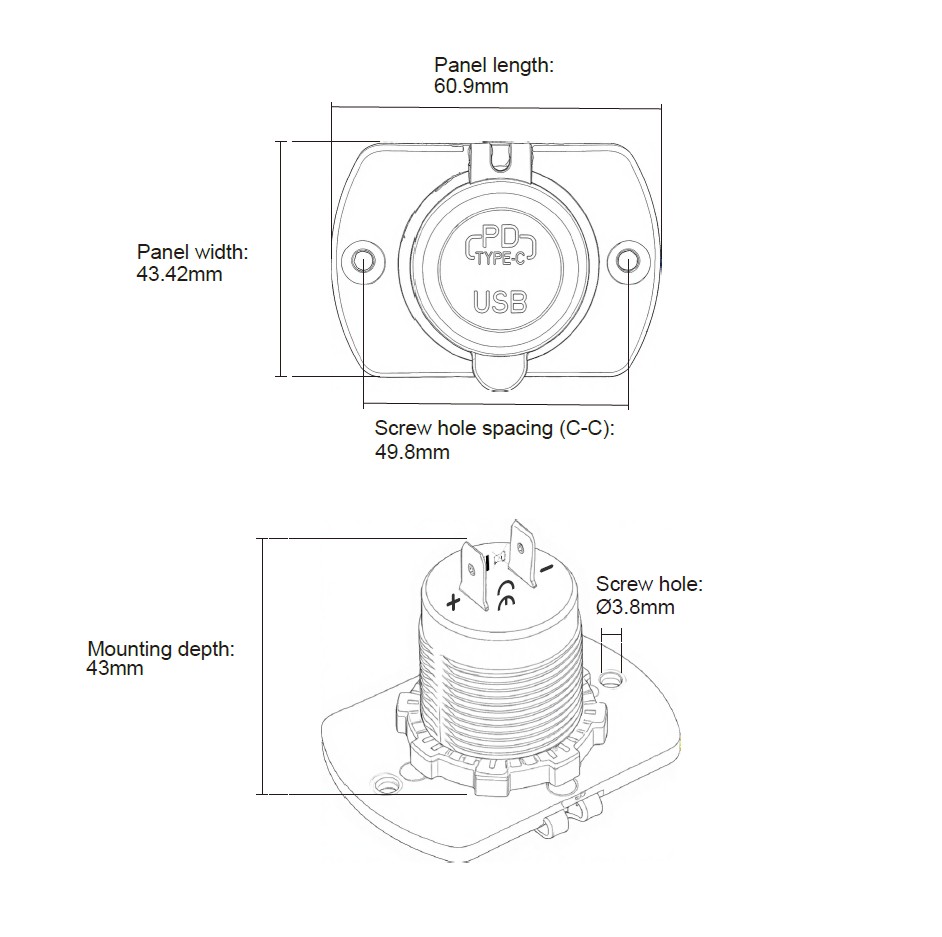 2x USB zásuvka v montážním panelu.