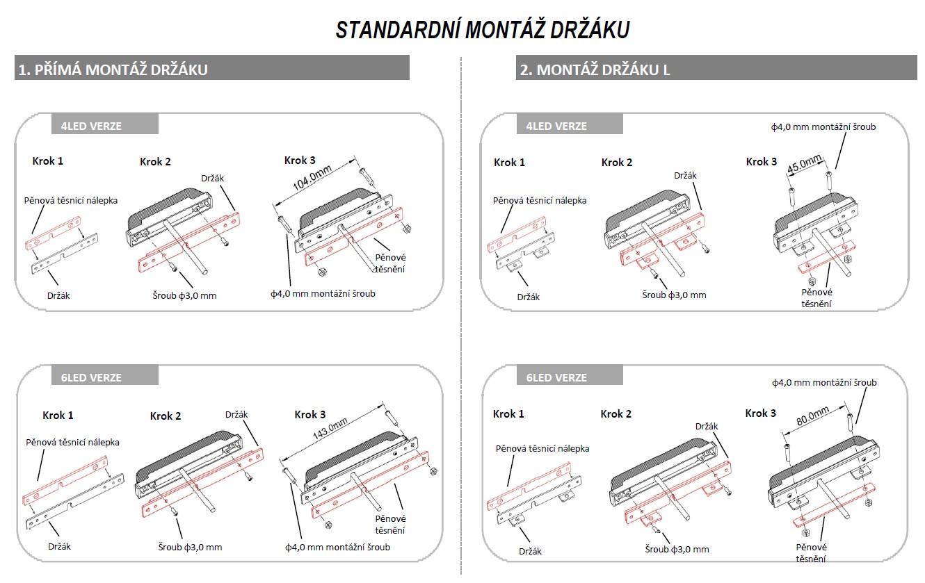montáž pomocí šroubů nebo přilepením