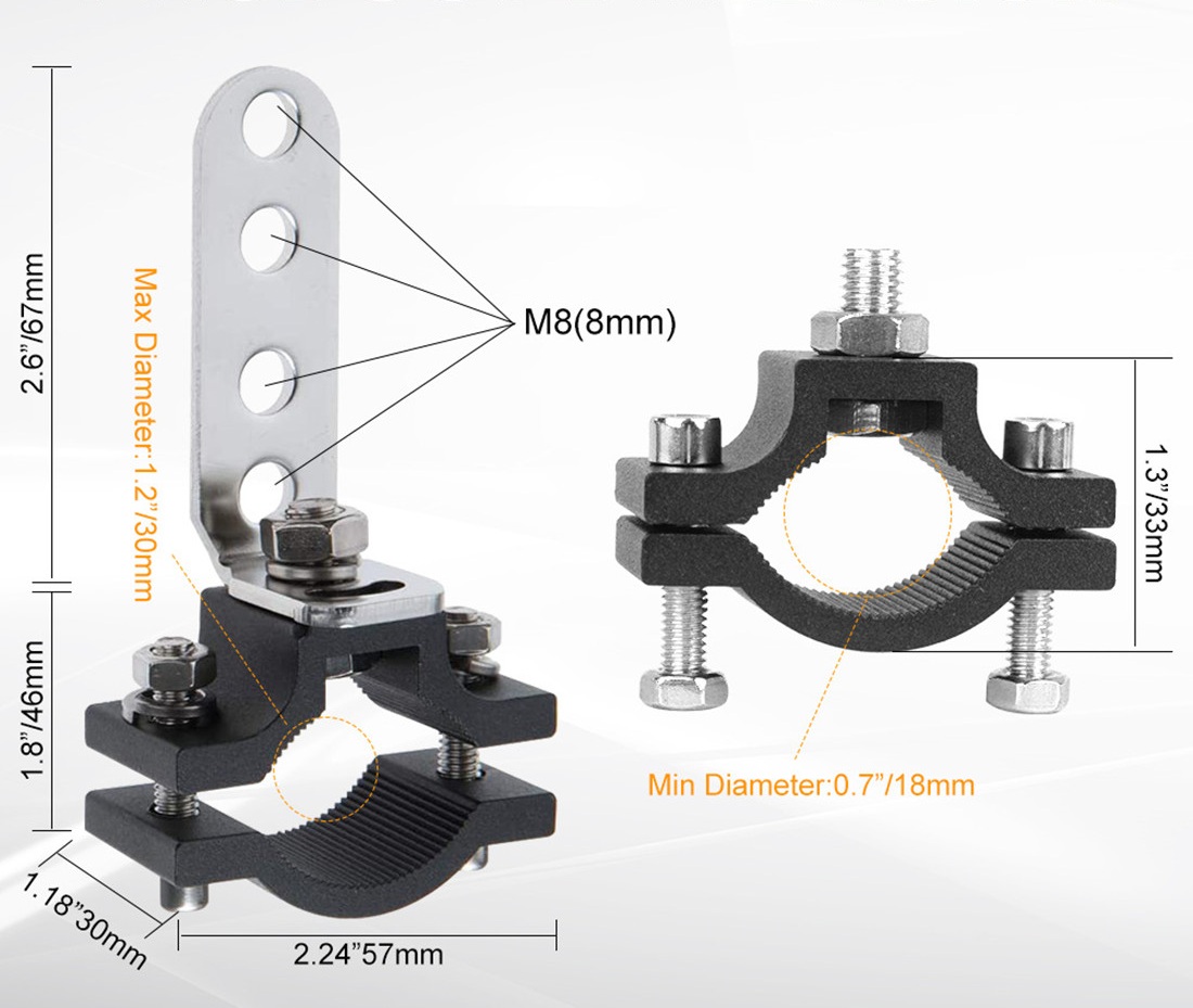Tento vysoce kvalitní držák je navržen pro bezpečné upevnění pracovních či LED světel na kulaté konstrukce – jako jsou ochranné rámy, bull-bary, příčníky či trubkové konstrukce vozidel (SUV, off-road, ATV/UTV). Díky konstrukci z nerezové oceli a hliníku je ideální pro použití v terénu i v nejnáročnějších podmínkách.