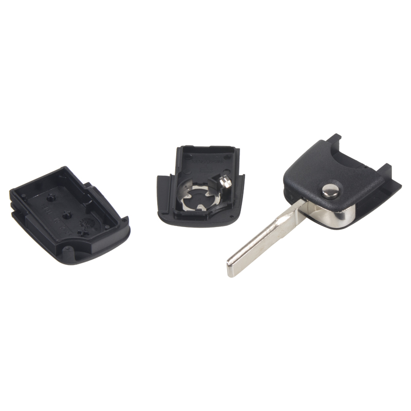 Náhradní obal vystřelovacího klíče pro vozy koncernu VW s 3-tlačítkovým ovladačem s oválnými tlačítky (bez elektroniky a čipu imobilizéru). Do klíče je nutno vložit z původního klíče elektroniku dálkového ovládání a čip imobilizéru (transpondér), planžetu klíče je třeba nechat vyfrézovat podle tvaru originálního klíče.