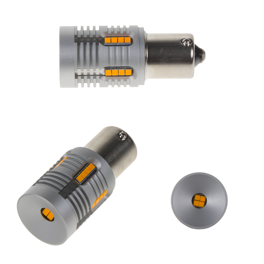 Nová generace LED autožárovek s paticí BA15S, oranžová, 24x LED čip 1W.