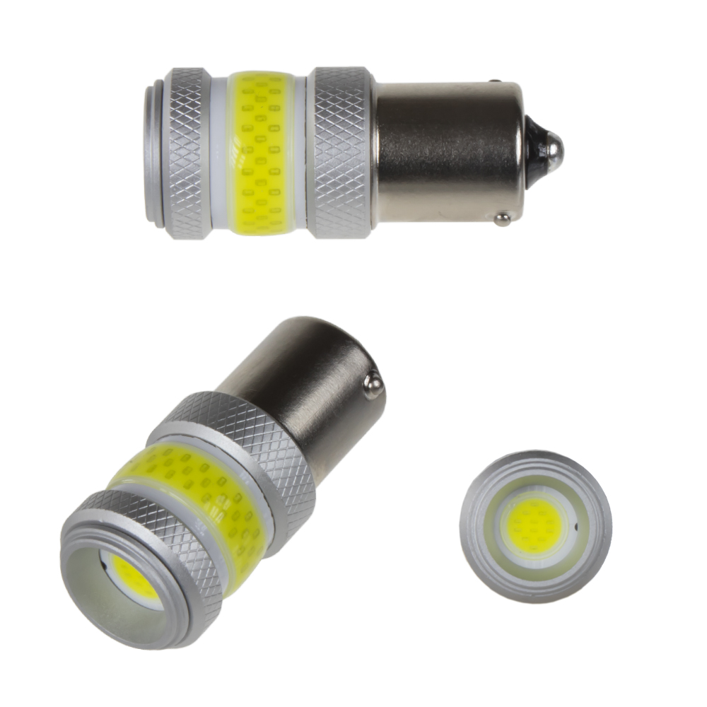 Nová generace COB LED autožárovek s paticí BAU15S, bílá, LED čip COB 360⁰.