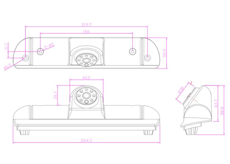 Barevná kamera zabudovaná ve 3. brzdovém světle. Součástí je LED brzdové světlo pro vozy Citroën, Fiat a Peugeot.