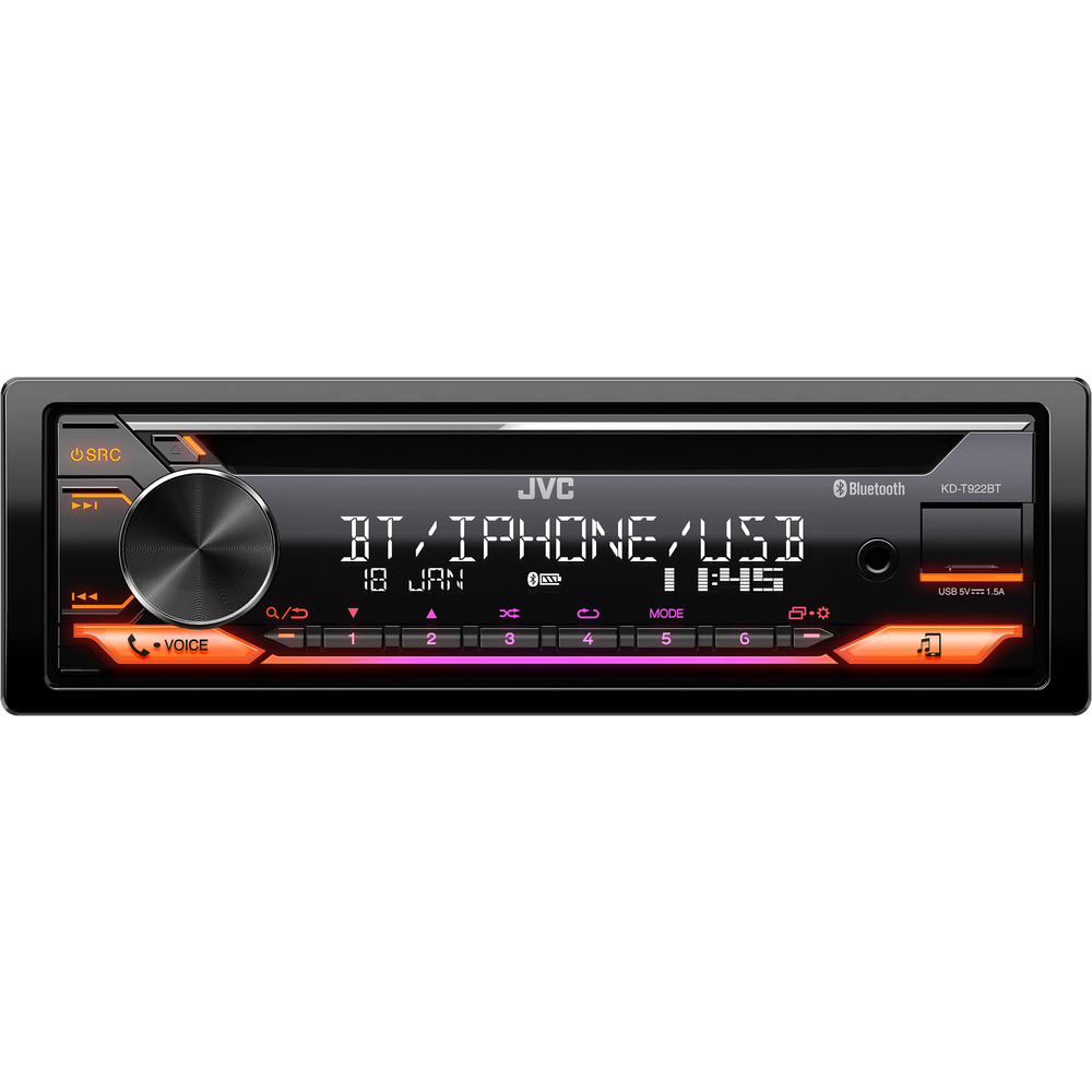 Autorádio s FM/MW/LW, CD přehrávač s čelním USB/AUX vstupem a technologií Bluetooth.