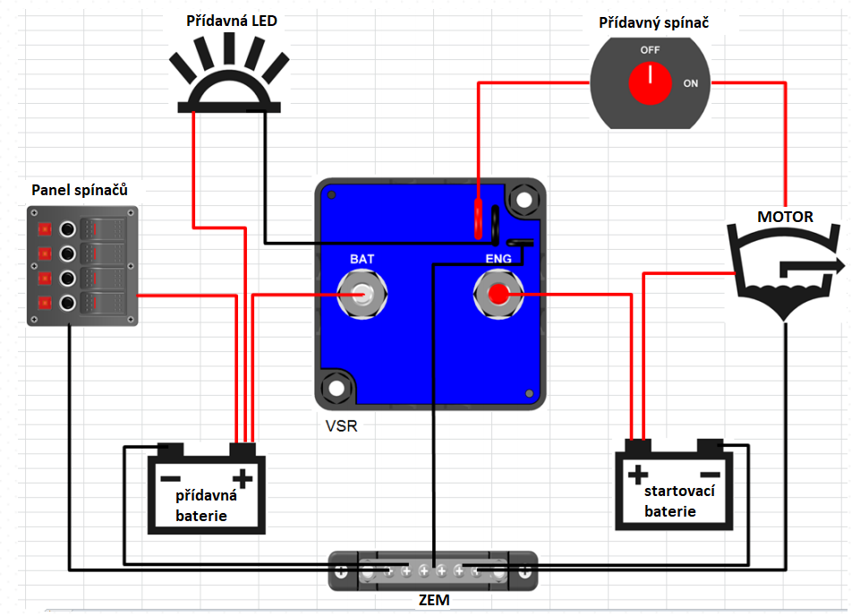 černá smyčka - možnost připojení kontrolky sepnutí relé (-)