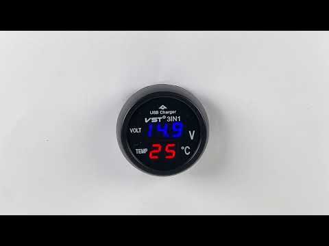Digitální voltmetr s teploměrem + USB nabíječka do CL zásuvky (autozapalovače).