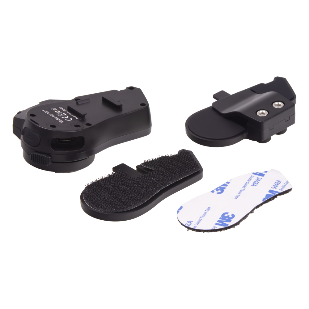 - obsah balení: jednotka pro instalaci na helmu, dva druhy montážního uchycení jednotky klip nebo nalepovací, spojovací kabeláž, sluchátka, mikrofon na pružném držáku, mikrofon pro instalaci vně helmy, 2 x nalepovací suché zipy pro sluchátka, 2 x nalepovací suchý zip pro mikrofon, 1x USB/USB-C kabel.