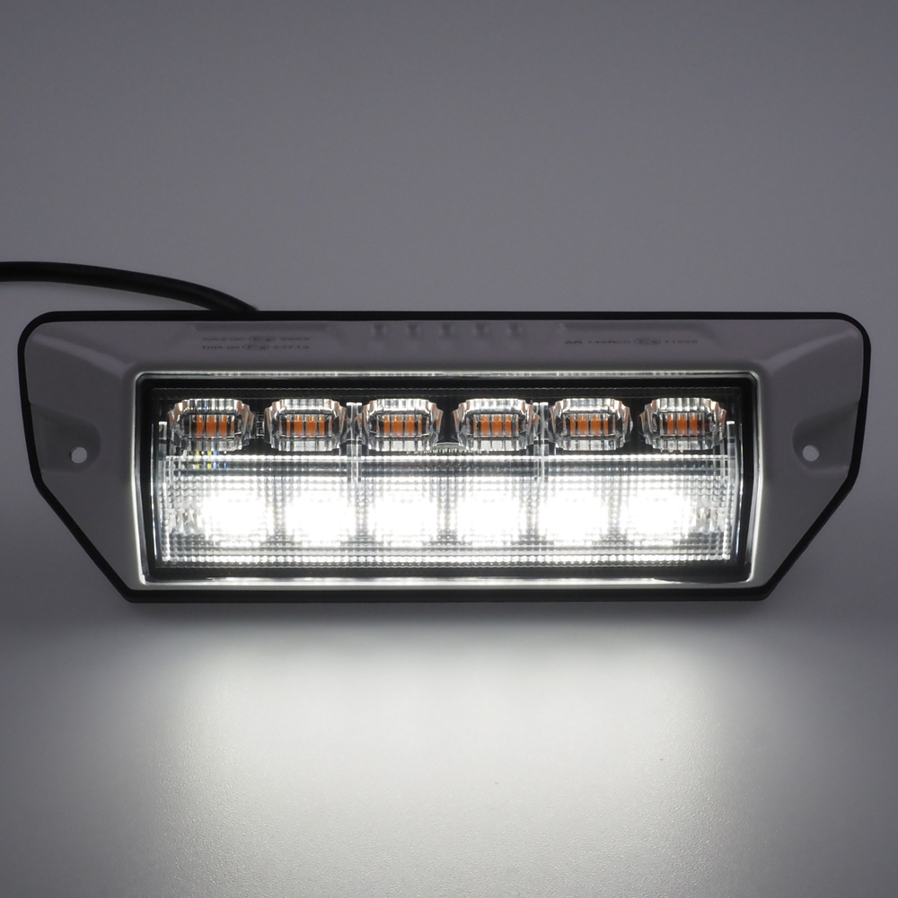 Přídavné oranžové výstražné LED světlo s bilým pracovním světlem pro externí povrchovou montáž.