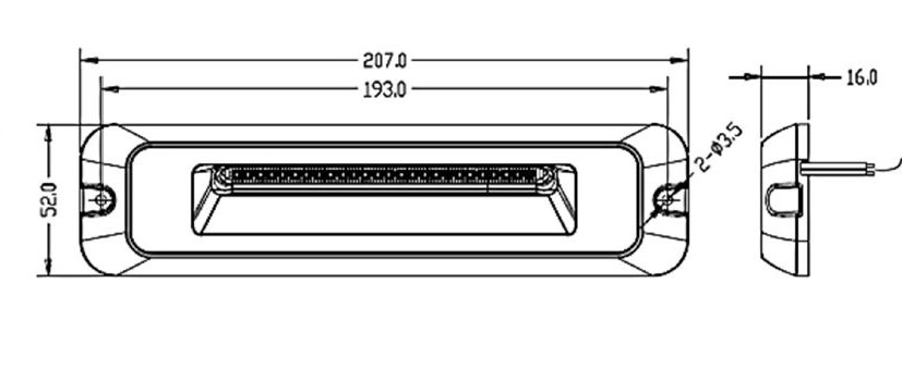 rozměry: 207 x 52 mm, tlouštka 16 mm