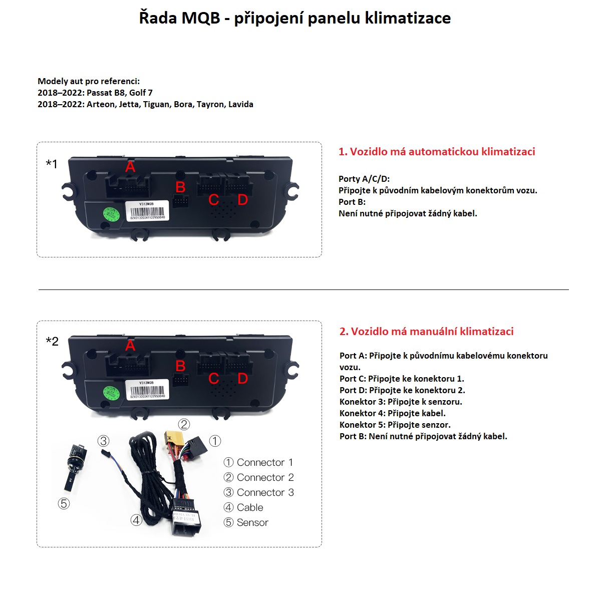 Pokud je původní auto manuální klimatizace, použijete senzor "KLPSENZOR", součást balení.