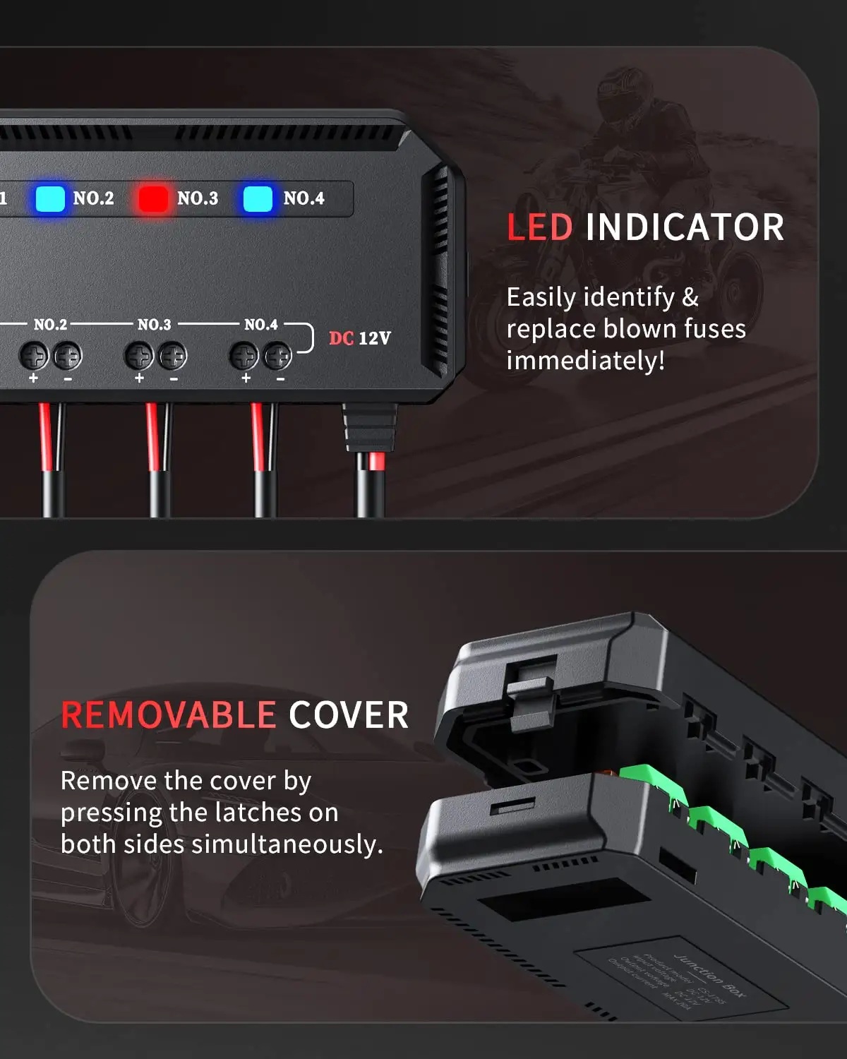 LED indikátor spálené pojistky - Snadno identifikujte a okamžitě vyměňte spálené pojistky, aniž byste museli hledat! LED indikátor se rozsvítí, když je detekována spálená pojistka.