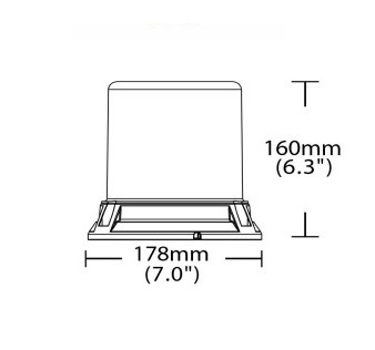 rozměry: ø základny 178 mm / ø krytu 130 mm / výška 160 mm