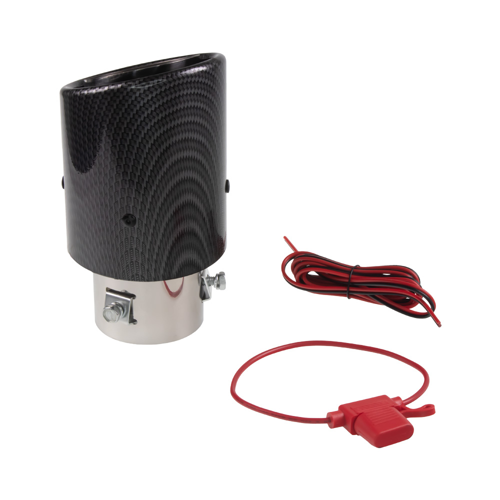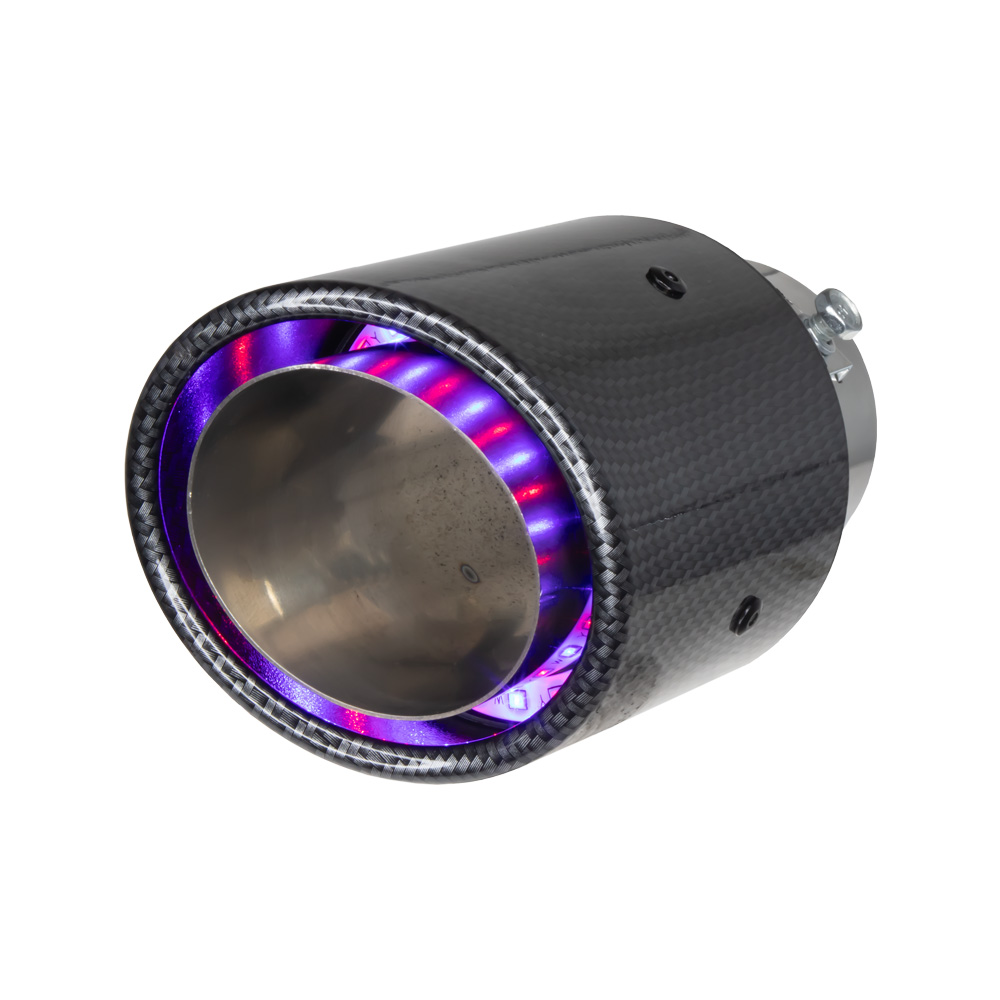 Univerzální tuningová koncovka výfuku s červeným nebo modrým LED podsvícením. Dodejte svému vozu sportovní a futuristický vzhled s tímto luminescenčním krytem výfuku z uhlíkového vlákna.
