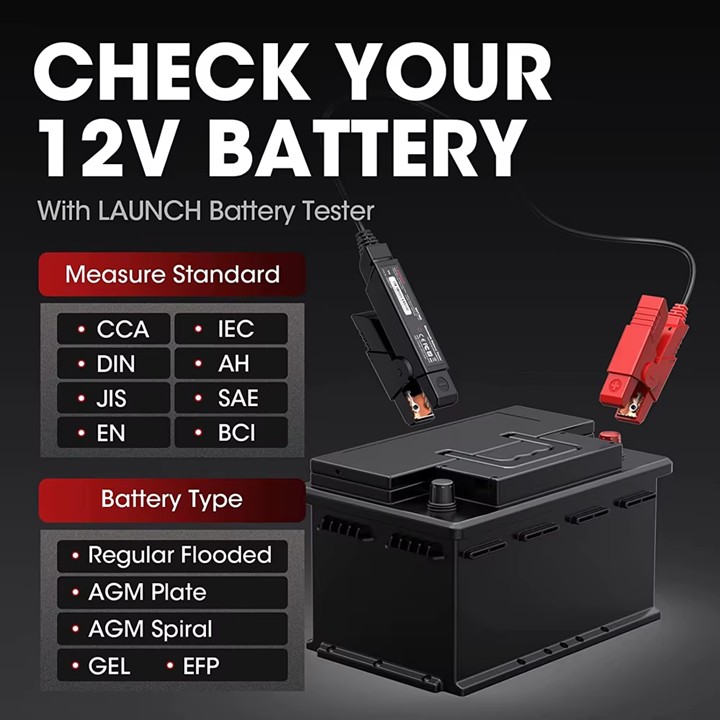Měřené normy: Kompatibilní s různými mezinárodními standardy, včetně CCA, BCI, CA, MCA, JIS, DIN, IEC, EN, SAE a GB.