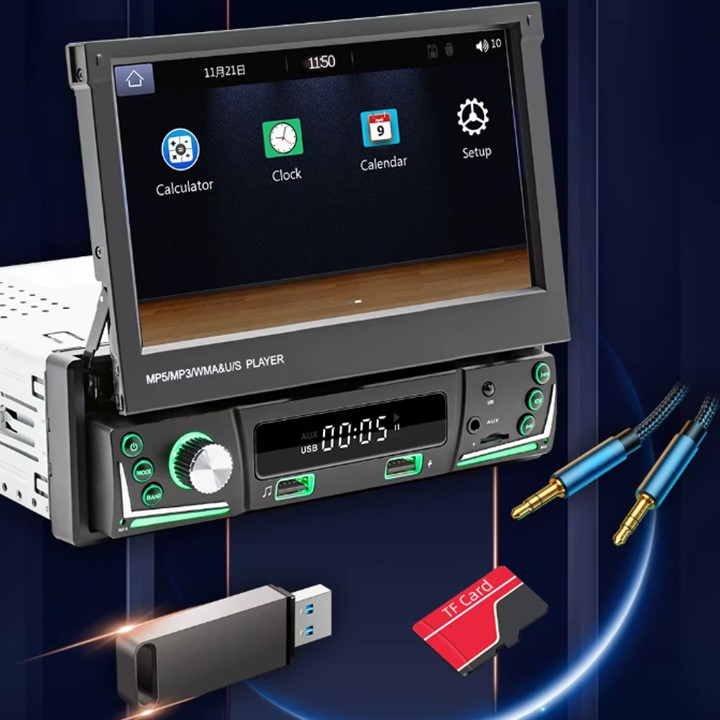 Autorádio s FM / MW, 7" TFT - LCD motoricky vyjíždějícím monitorem a čelním 2x USB.