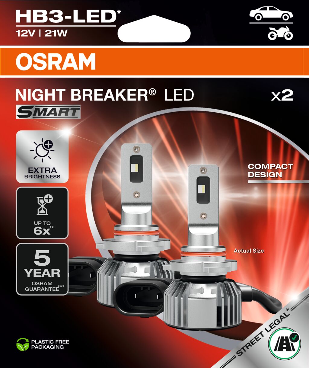 S legálními (1) NIGHT BREAKER LED SMART, díky jejich inovativnímu kompaktnímu designu, sofistikované konstrukci a výjimečnému jasu je nyní možné přejít z tradičních halogenových žárovek na pokročilou LED technologii OSRAM u ještě více vozidel.