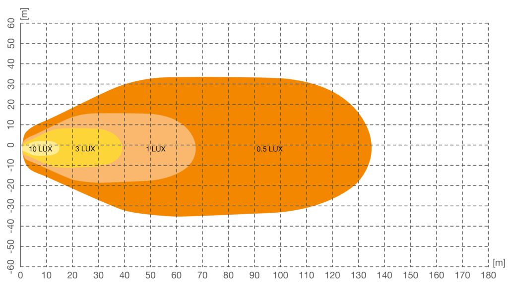 vzdálenost s intenzitou osvětlení 1lx: 68 m