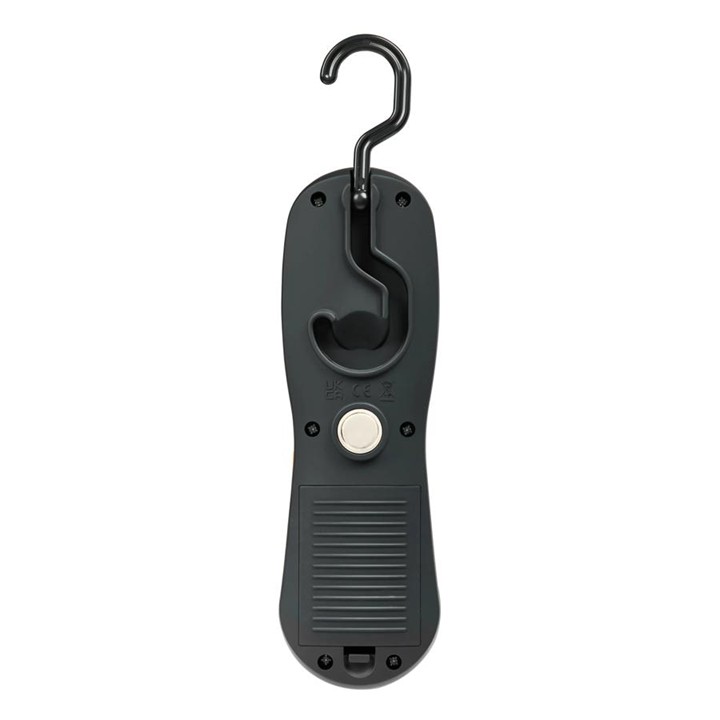 Je také vybavena magnetickou základnou a 360° stupňovým závěsným hákem, což umožňuje snadné umístění svítilny v jakémkoli pracovním prostoru.