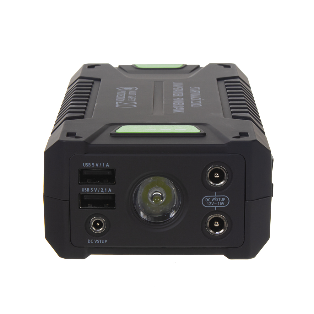 Startovací zdroj slouží pro nouzové startování osobních automobilů, dodávek, motocyklů, čtyřkolek, sekaček atd.