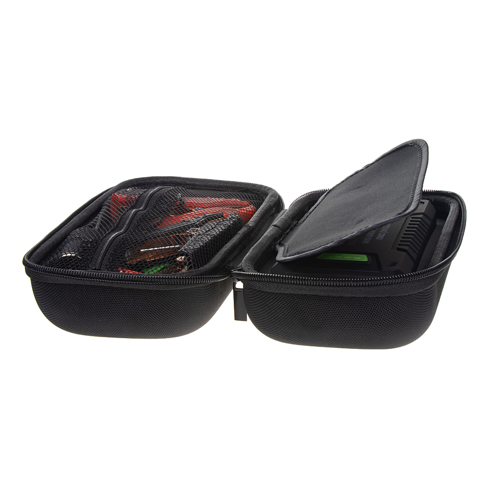 Obsah balení: PowerBanka, klipsy pro připojení na autobaterii, kabel USB/microUSB, CL zásuvka/5,5mm konektor pro výstup napětí 12-16V, Cl nabíječka, AC nabíječka, odolné pouzdro.