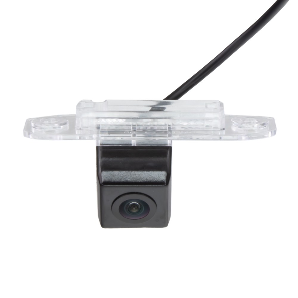 Barevná kamera s LED osvětlením pro SPZ. Je určena pro zabudování do osvětlení nad zadní registrační značku Volvo a Mercedes. Vhodné např. pro kombinaci s monitorem, nebo s adaptéry mi-xxx pro připojení k originální navigaci. Montáž: Vyjmete 1 lampičku nad zadní SPZ a místo ní vložíte do originálního otvoru tuto kameru, přeinstalujte původní osvětlení SPZ.